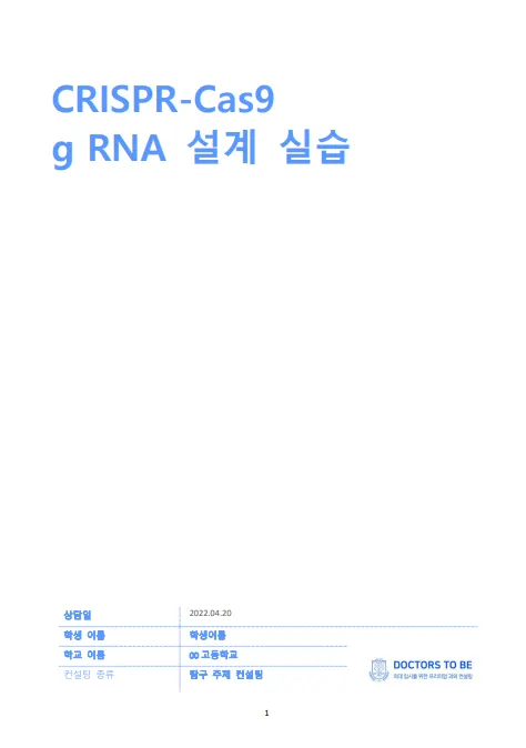 학생은 평소에 구순 구개열과 관련되어 있다고 알려진 kinesin-1과 같은 유전자에 대해 관심 있었는데, 추후 관련 유전자에 대한 심화 탐구로 발전시키기 위해 CRISPR-Cas9을 직접 활용하고 유전자에 대한 관심을 보여줄 수 있는 활동으로 다음 탐구주제를 설정했습니다.