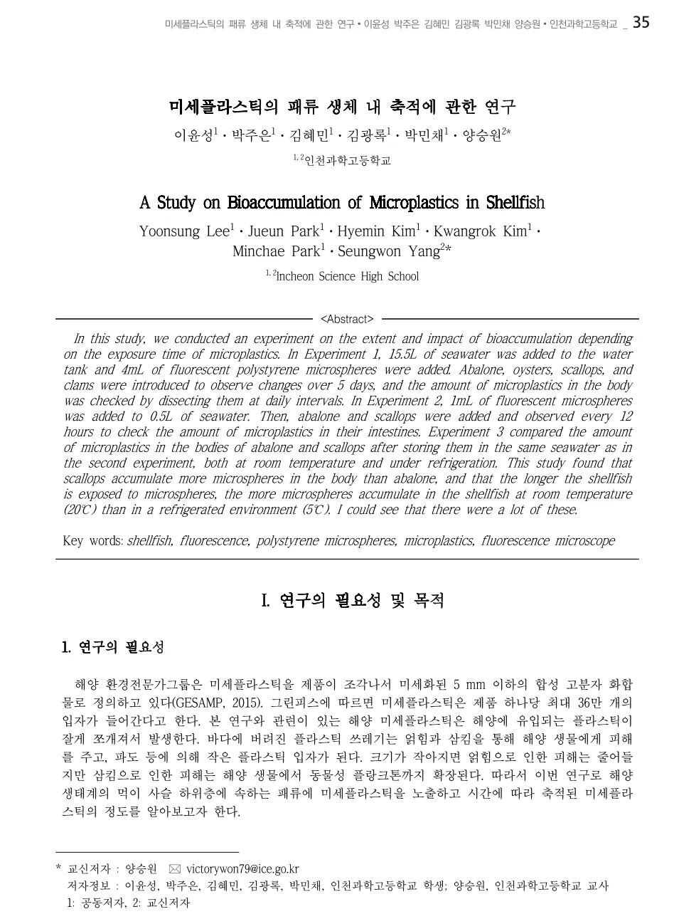 위 보고서에서는 생이 새우를 대상으로한 논문을 참고하여 패류(전복, 가리비, 굴, 바지락) 을 대상으로 실험을 진행했다.