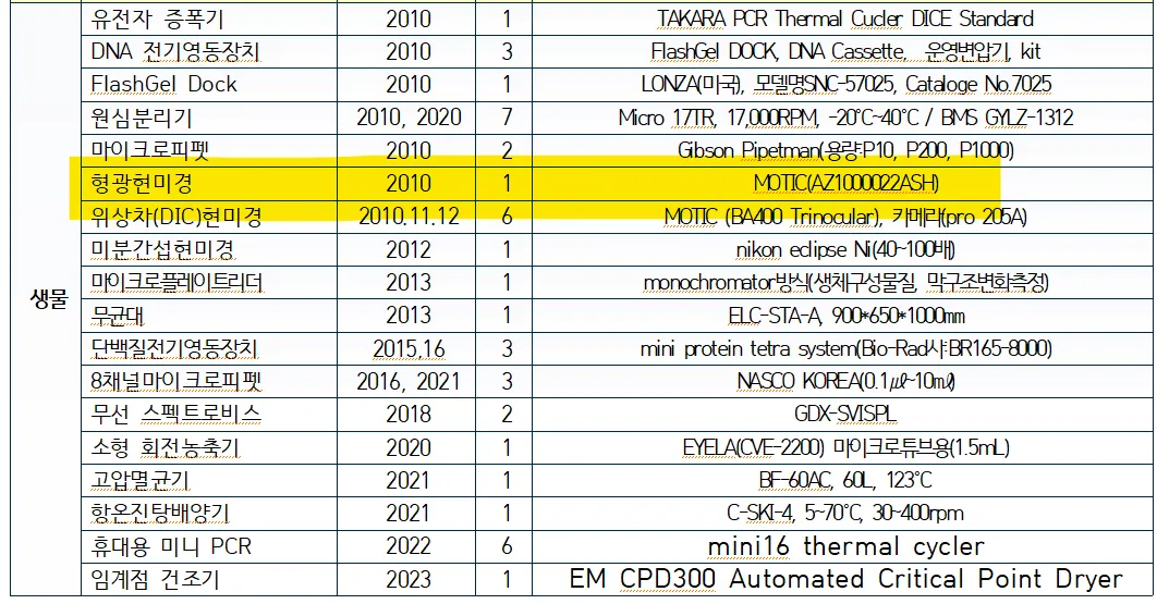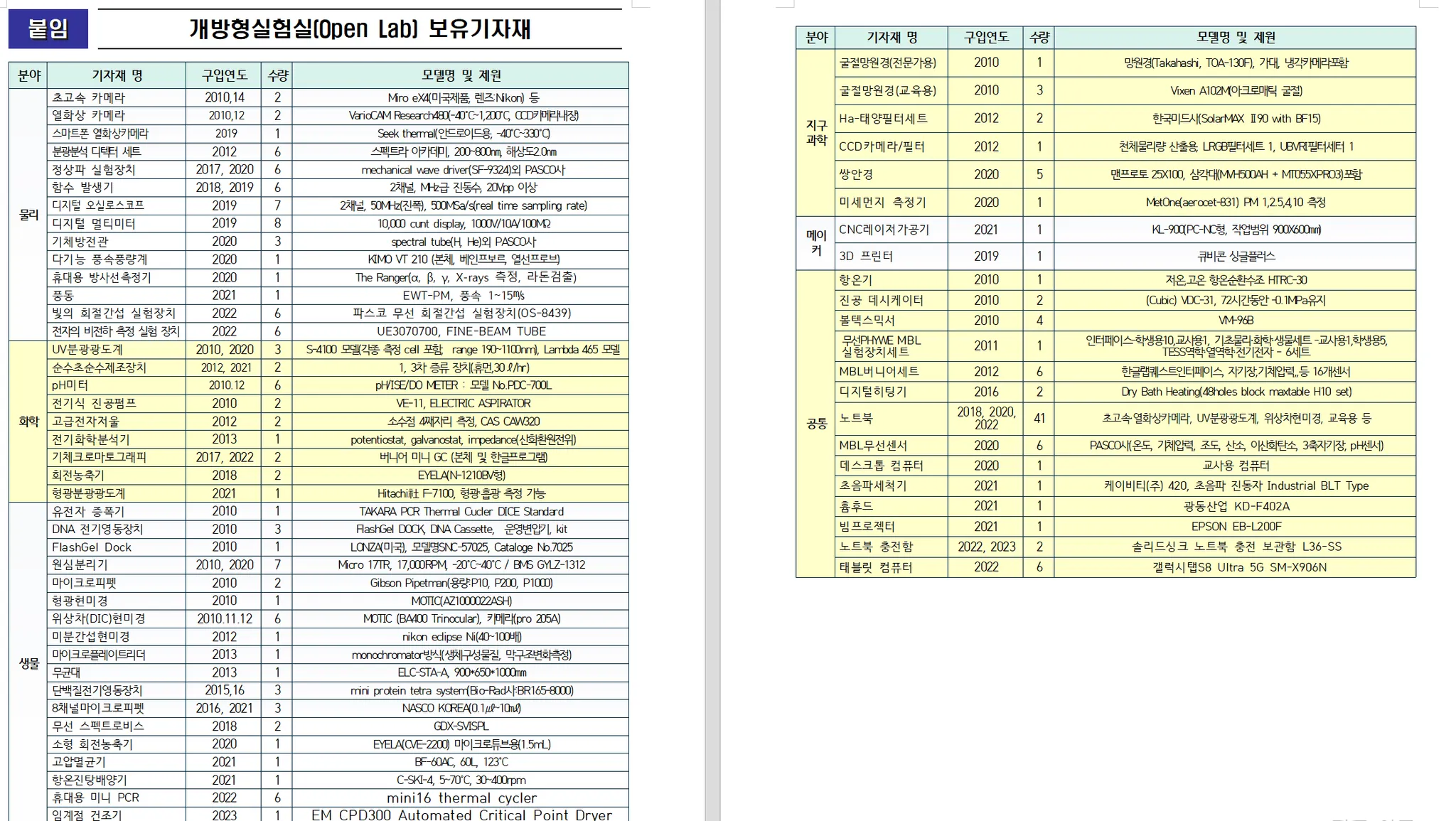 (전사고, 영재고에서는 이런 장비를 자체적으로 보유하고 있는 경우들이 있으나, 이것보다 좋은 경우는 거의 없다.)