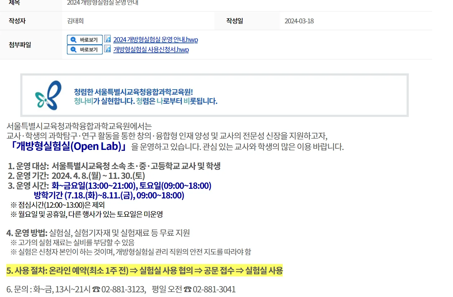 (주의! ‘안전공제회’의 보호를 받아야 실험 중 사고가 생겨도 케어가 가능하기 때문에 정식 공문이 필요하다.