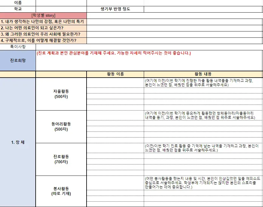 - 생기부에 적을 내용의 초안을 적어 가면 반영해 주시는지